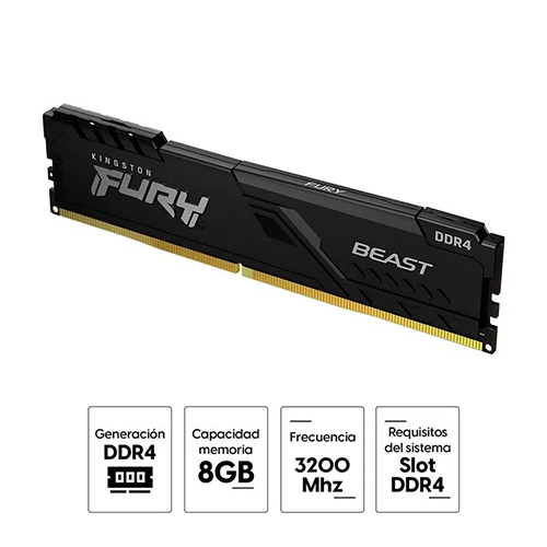 Memoria ram Kingston Fury Beast 8GB, DDR4, 3200Mhz, CL14